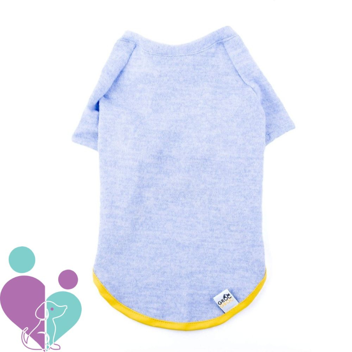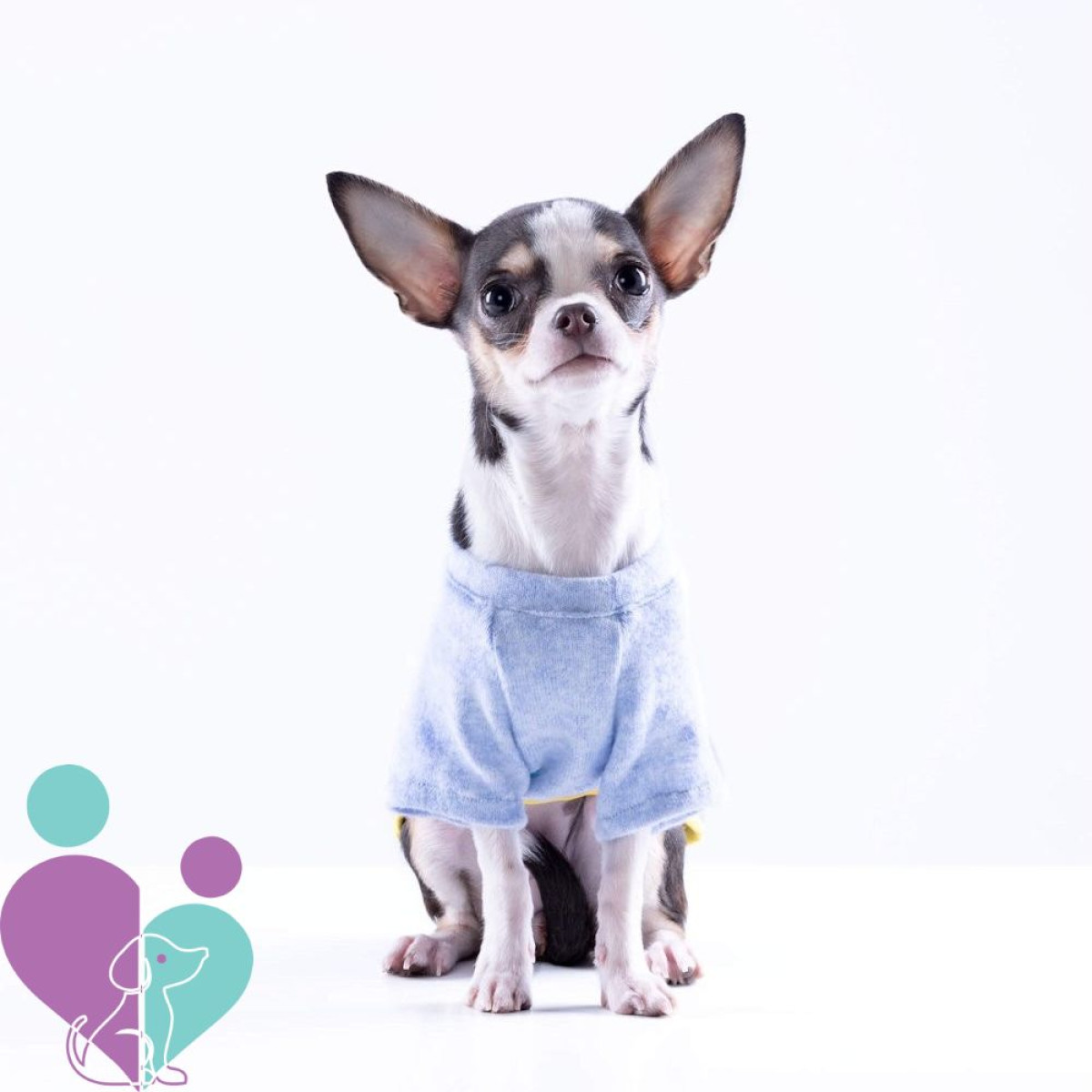 Póló közepes vagy kicsi kutyának, kényelmes és rugalmas, világoskék kötésből, amely tökéletes szövetségessé teszi ezt a ruhadarabot az otthoni élethez.