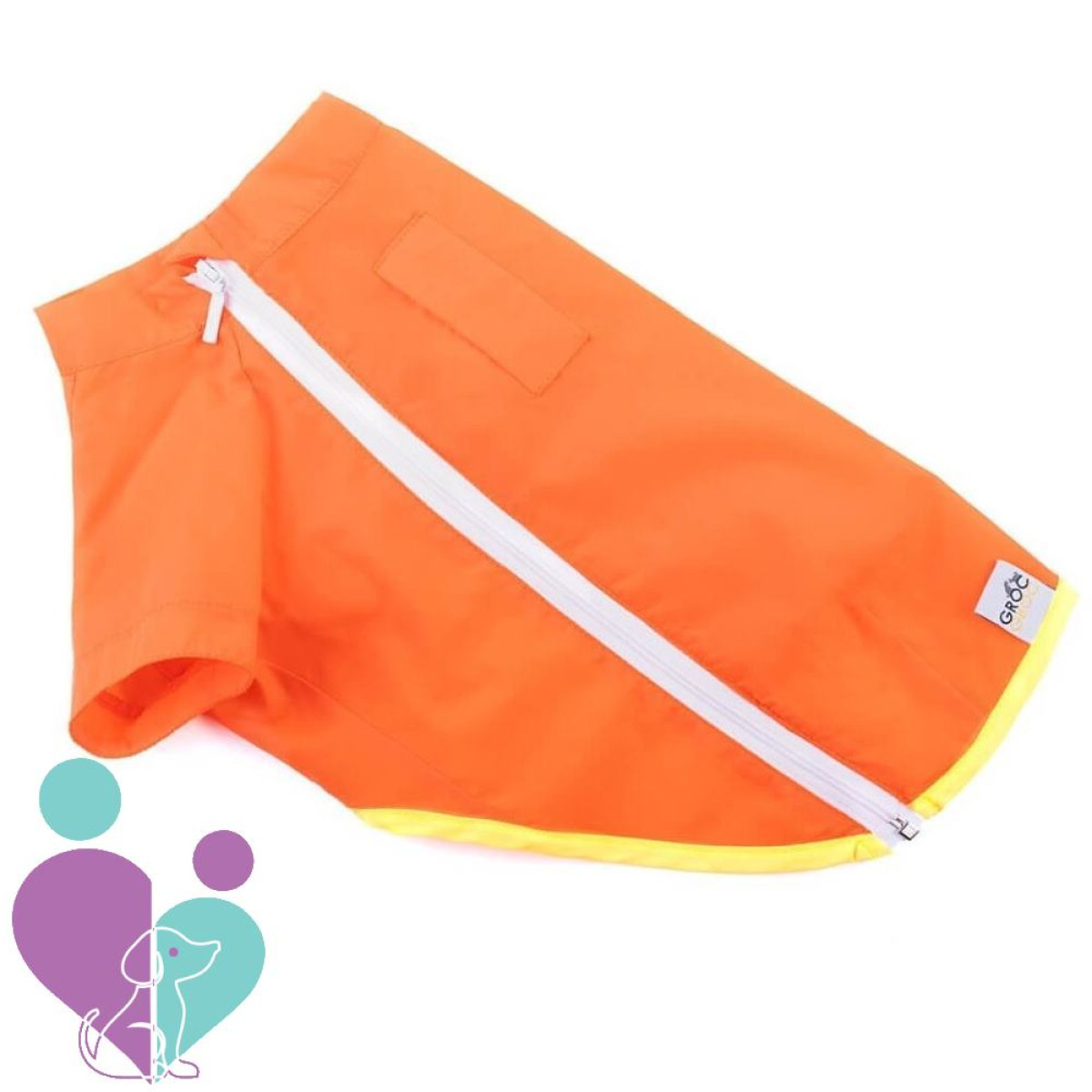 Narancssárga vízálló nylon esőkabát kutyáknak.